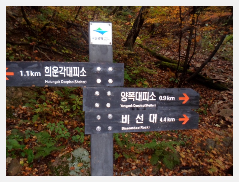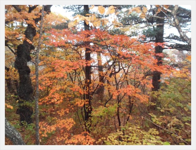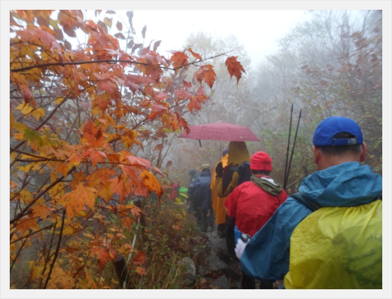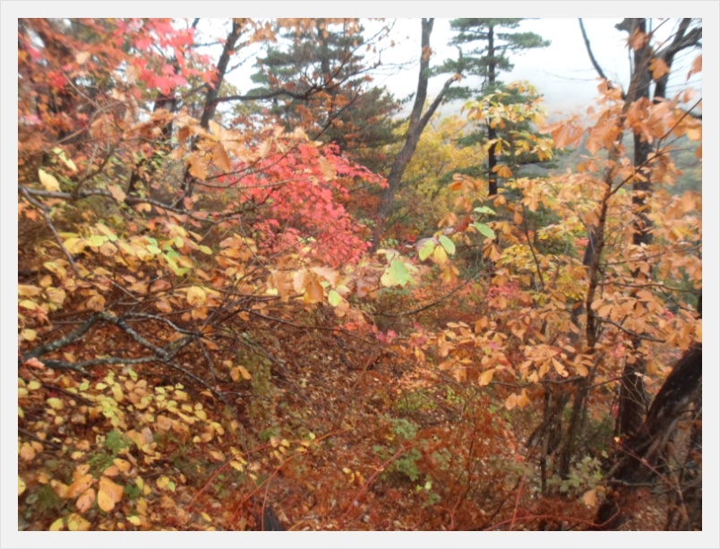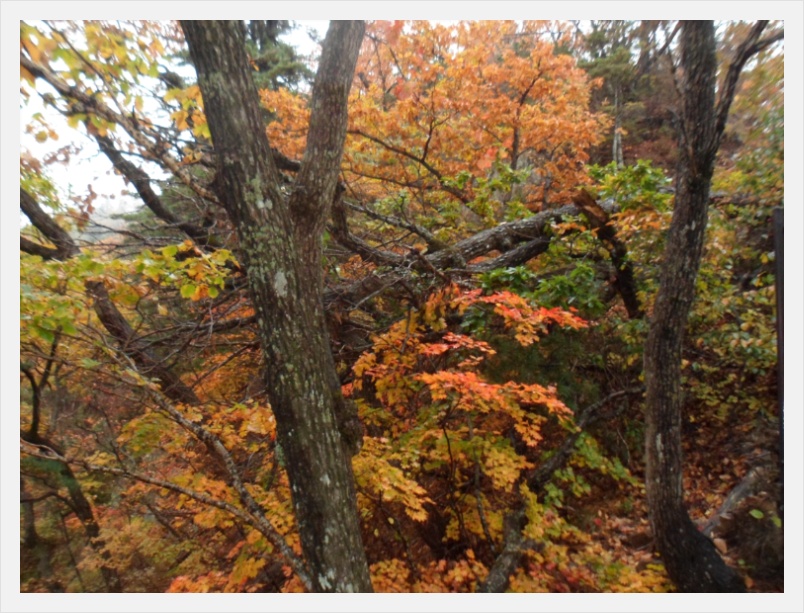 시월은 나라 전체를 붉게 물들일 단풍으로 가을산은 어딜가나 단풍의 향연 오늘 비와 운무에 가려 정상에서의 조망은 아쉬웠지만 또 하나의 추억으로 간직해야 겠다