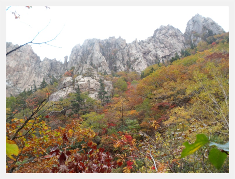 푸른빛이 가득했던 설악산이 화사한 색동색으로 보기에 화려해도 속내는 무척이나 쓸쓸할것 같은 단풍 얄궂은 운명에 짠한 마음이 파문을 일으킨다 단풍의 아름다움이 시나브로 슬픔의 감정까지 불러 오는것은 왜일까